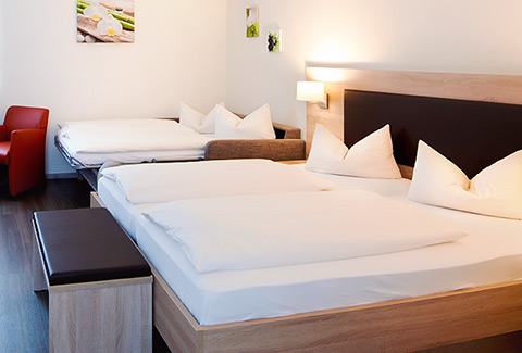 All rooms are equipped with shower, toilet, telephone, cable TV and a bottle of water.The Room rates included a rich buffet breakfast, free parking right outside the hotel and a WLAN access which is available in the hotel and in our restaurant.